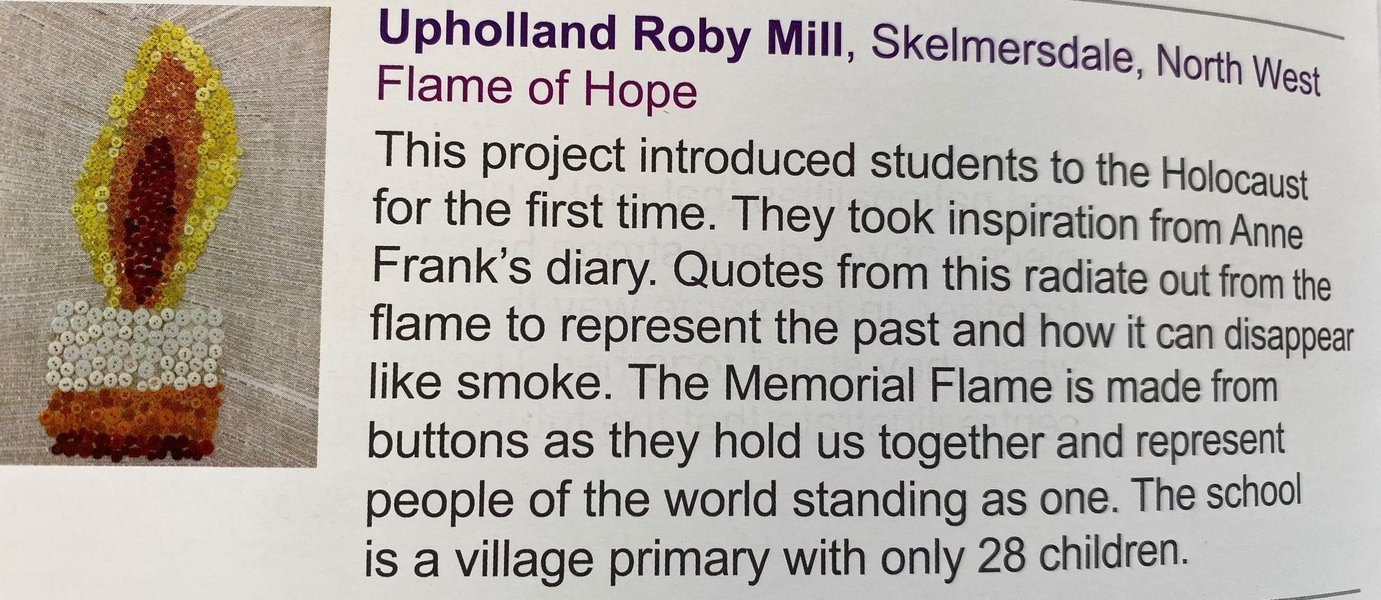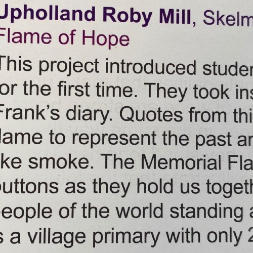 Recently, we have enjoyed a visit to one of Liverpool’s art galleries and are extremely proud of our award winning flame created to commemorate the Holocaust Memorial, which took part in the national tour in 2020.